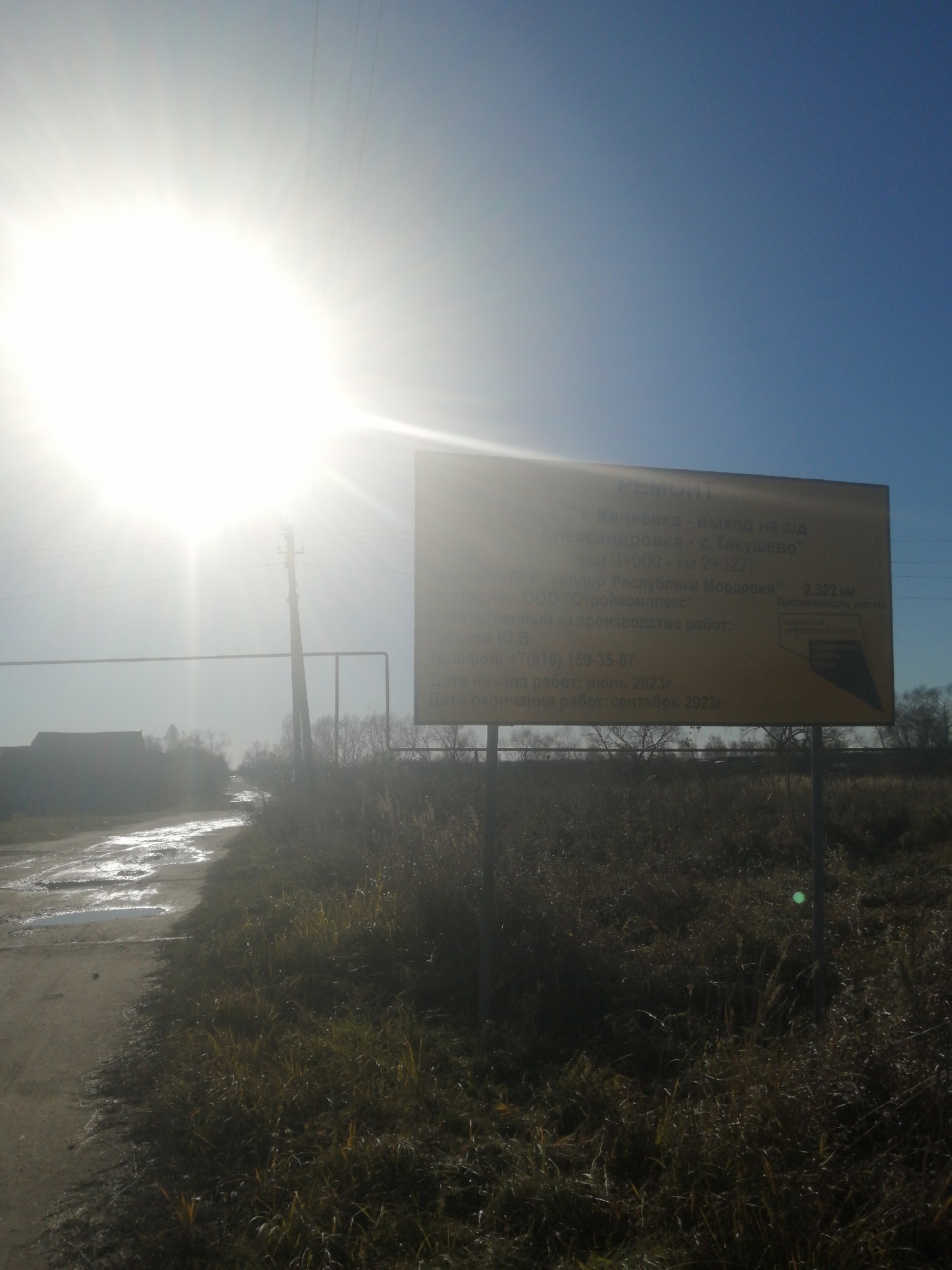 Теньгушевский р-н село Старая Качеевка. Поставили щиты с рекламой, что ведутся дорожные работы. А точнее сказать что уже окончен ещё 30 сентября!!! Но по факту они и не начинались!!! По этой дороге возят школьников, в селе много пожилых и даже старых людей. В магазин поставщики отказываются возить продукты из-за плохой дороги!!! А скоро зима и будет ещё хуже!!! Писала в администрацию Теньгушевского района, но мер никаких принято не было!!! Очень надеемся на вас, может хоть предадите огласке о нашей проблеме??? Может быть хоть сдвинется с мёртвой точки???