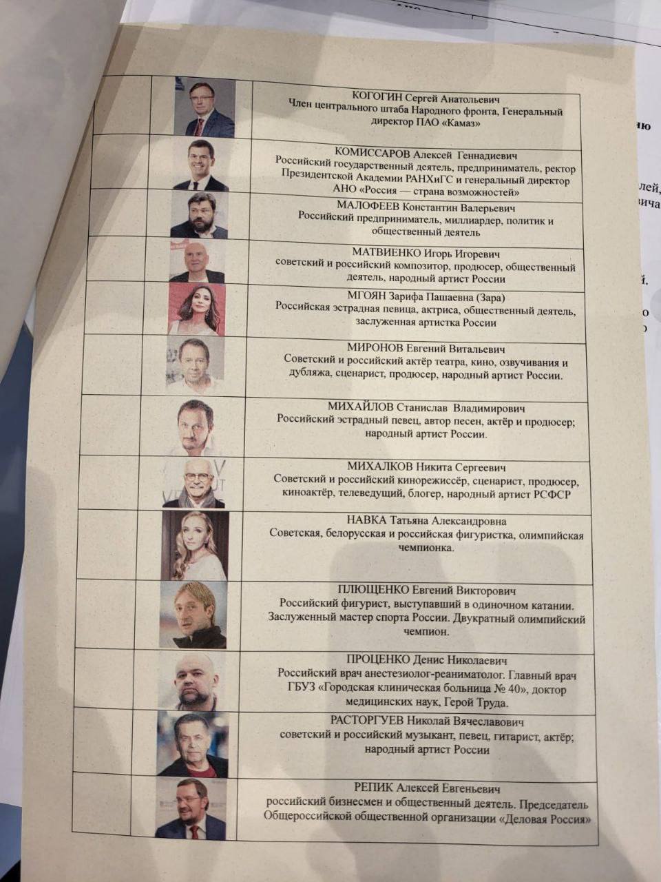 Список популярных личностей, оптом купленных в «команду Путина», занимает несколько листов: