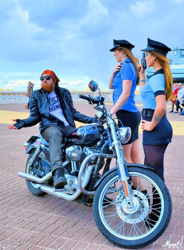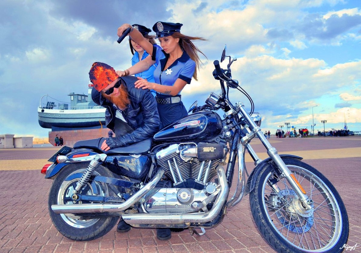 Девушки позируют в форме полиции, их набирают в мотобат
