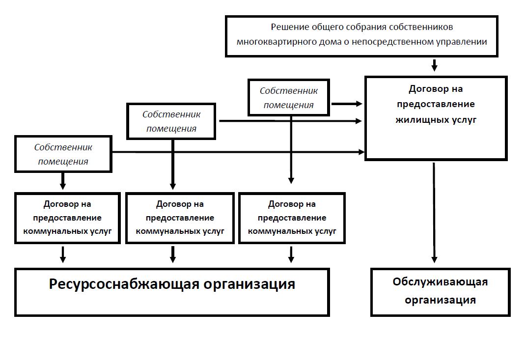 Что еще бывает? Еще бывает непосредственное управление. Вещь, знакомая тем, кто живет в частных домах. Построил себе человек дом и сам его обслуживает. Коммунальщикам отдельно платит, за вывоз мусора отдельно. Крышу перекрыть — бригаду нанимает. Так вот самое интересное! Никто не запрещает и многоквартирным домам на такую форму перейти. Понятно, что специфика тут другая и обслуживание многоквартирного дома — вещь куда более сложная, чем отдельно стоящего на одну семью рассчитанного. Поэтому в тех домах, где больше двенадцати квартир, положено заключать договор с обслуживающей компанией. Хоть с тем же МУП «Центр ЖКХ».
